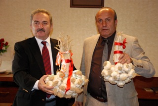 Taşköprü Belediye Başkanı Hüseyin Arslan’da, Zeybek’e Taşköprü sarımsağı hediye etti.