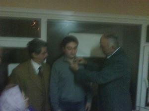 Eski İl Genel Meclisi adaylarından azeri kökenli Cem Öncül toplantıda DP’ye katıldı ve parti rozetini GİK Üyesi İbrahim Çetinkaya taktı.