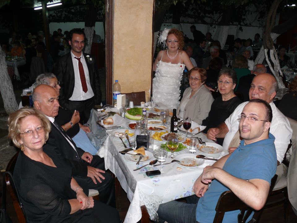 Münevver Fırat, Nizamettin Fırat, Damat Barış Şannan ve Gelin Derya Fırat davetlileriyle. |